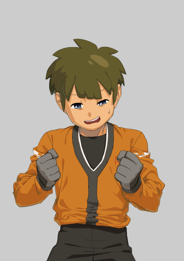 立向居は結構思い詰めがちというか、険しい顔してゴールを守ってることが多いので、最初は1枚目の表情だけやったけど、イナイレ2のムゲン・ザ・ハンド習得シーンを見て楽しんでる表情も描きたくなり2枚目の表情を追加しました。