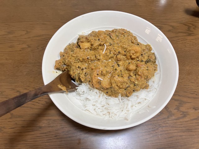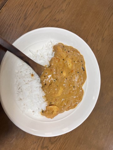 ココナッツエビチキンは、エビが少なすぎて急遽チキンを足したのでこうなった。元々はココナッツエビカレー。